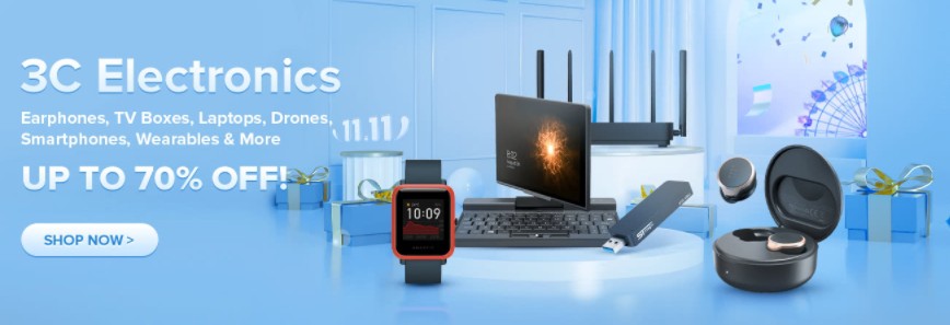 Какво е подготвил един от най-големите магазини за потребителска електроника и всевъзможни други артикули? На уебстраницата на виждаме оповестени до 70% отстъпки за смарт телефони, преносими компютри, дронове, ТВ плъгини, носими устройства, слушалки и други артикули, включително играчки, раници, облекла и какво ли още не.