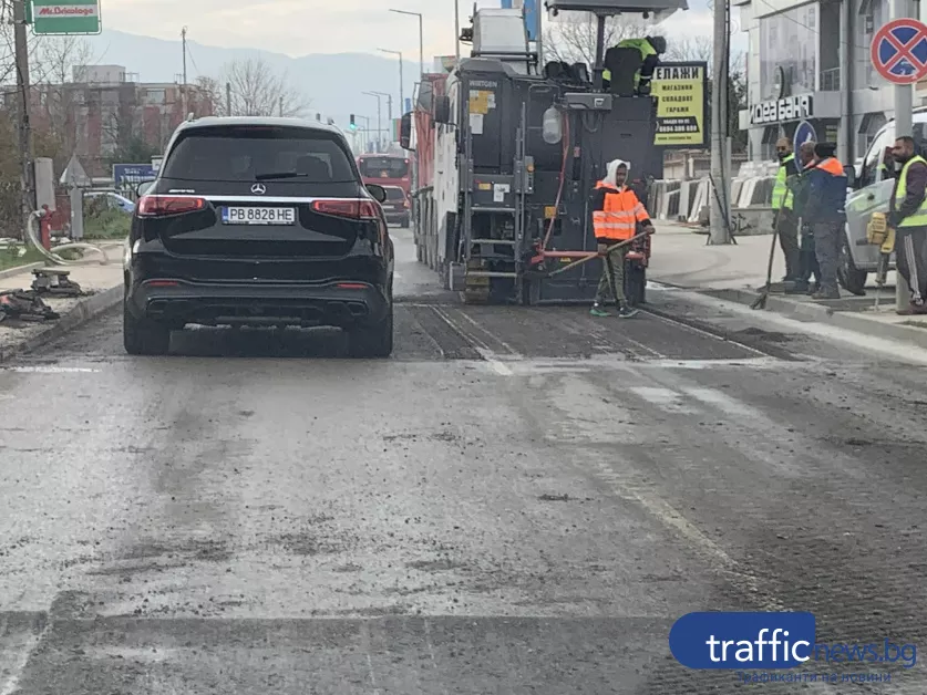 Кърпят асфалта на „Коматевско шосе", образува се огромно задръстване