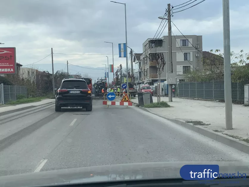 Огромно запушване се е образувало по „ Коматевско шосе “ поради ремонтни действия и кърпене на асфалта, алармира четец на TrafficNews.