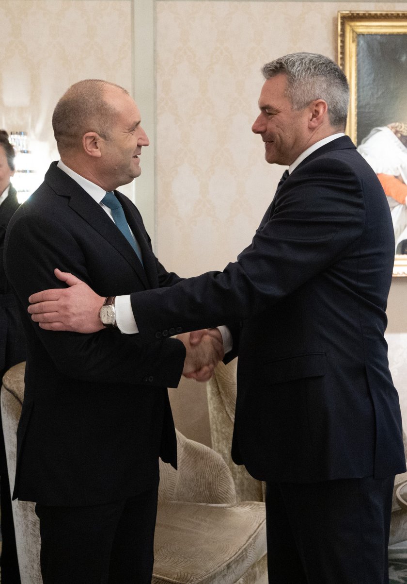 От своя страна федералният канцлер на Австрия - Карл Нехамер изрази благодарност към признатата от българския държавен глава покана да посети Виена за продължение на двустранния разговор и открои желанието на Австрия за усилване на съдействието със страната ни в защитата на външните граници на Европейски Съюз за справяне с незаконната миграция.