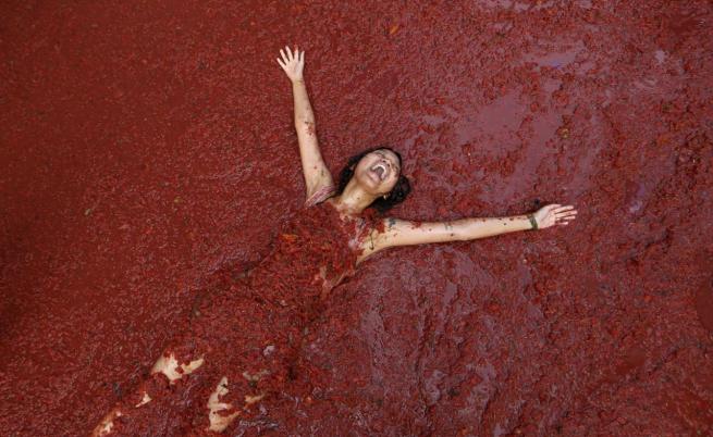 Thousands of revelers hurl over-ripe tomatoes at each other in the Spanish town of Bunol to celebrate the ‘Tomatina’ festival.