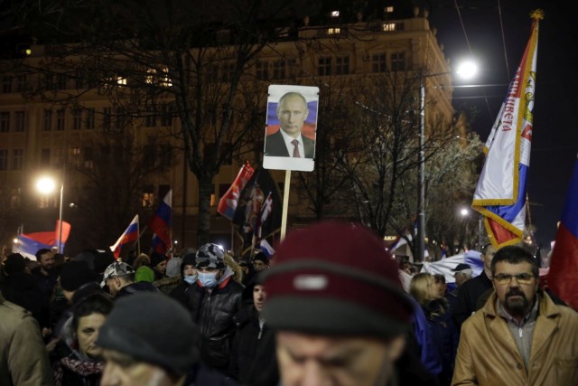 Около хиляда души се събраха нощес в Белград, с цел да изразят поддръжката си към съветския президент Владимир Путин и съветската инвазия в Украйна, както и враждебното си отношение към НАТО, оповестяват Франс прес и Българска телеграфна агенция.