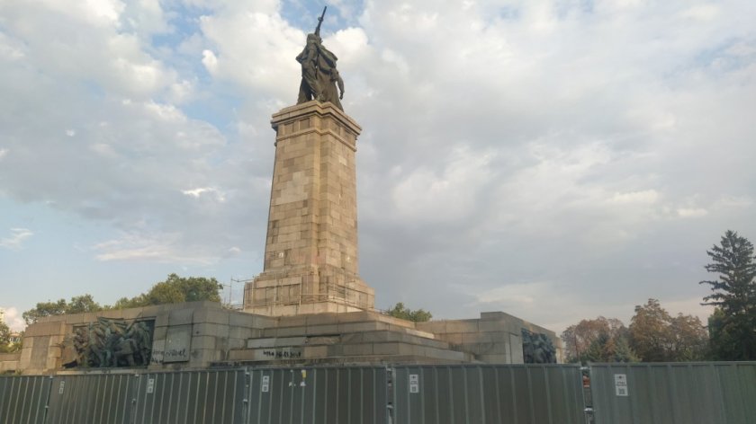 Около Паметника на Съветската армия вече има частично изградено скеле