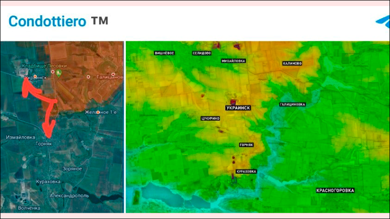 Днес съумях да беседвам с един от щурмовите командири, работещи в Селидово. Напуснахме съвсем цялата южна и централна част на града и се оттеглихме към височините над града. В същото време продължаваме да работим върху южното покритие и промоцията в Украинск,- сподели по-рано Condottiero.
