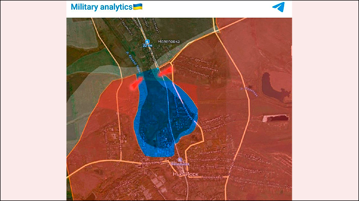 И в този момент се оказва, че „ брилянтната “ контраофанзива на 12-а бригада на Националната армия край Ню Йорк в реалност се оказа не офанзива, а влизане в „ котела “ на мястото, където преди този момент бяха унищожени елементи на украинските въоръжени сили. Сега врагът седи там и не може да мръдне на никое място.