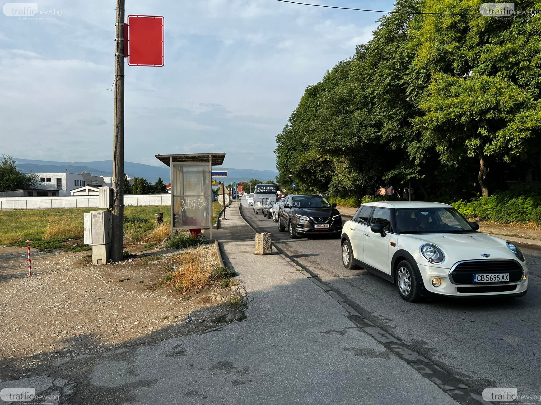 Опашки от коли на ул. „ Димитър Талев ” в Кючука изнервят пловдивчани всекидневно. Причината за натовареното придвижване е градеж, който заема едното пътно платно в посока Марково, а насочването на трафика се прави от двама строители. За пътния безпорядък алармира четец ТrafficNews , който показа, че с цел да премине по въпросната улица заран, изисква много време, тъй като потокът на коли е огромен, а регулирането се прави по безразсъден метод.