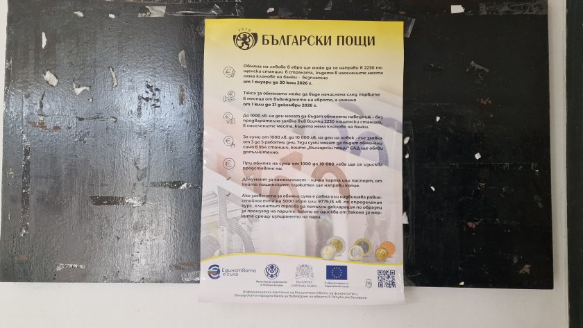 Сменяме левовете в евро и в пощите - 2230 станции в странната обменят валутата безплатно