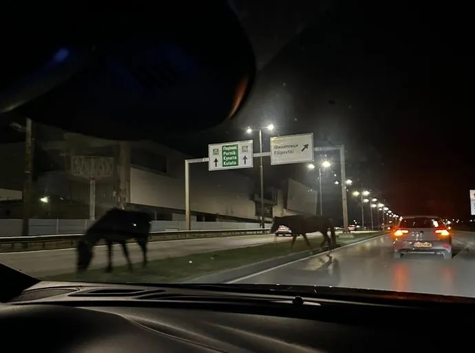 Опасна обстановка се е разиграла вечерта на 20 ноември на Околовръстното на столицата. Коне са изскочили на пътното платно. За това сигнализират водачи в групата „ Катастрофи в София “. Двете животни са видяни при разклона за „ Филиповци “. Те най-спокойно пресекли платното, с цел да стигнат до тревата в разграничителната полоса, демонстрират публикувани фрагменти.
