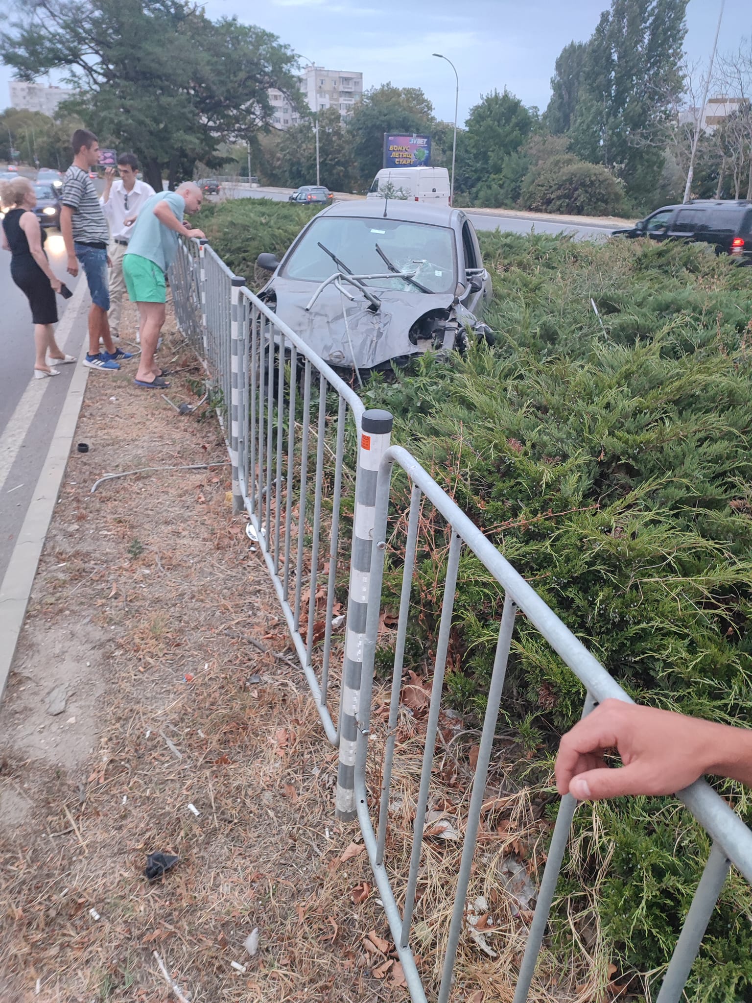 Тежка катастрофа във Варна - колата е смазана в храстите СНИМКА