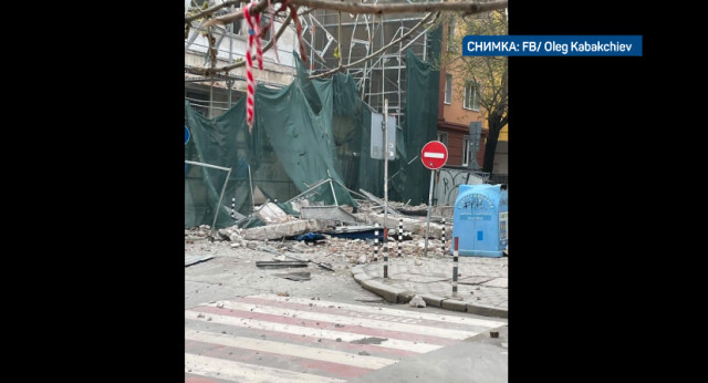 Опасно срутване на постройка в центъра на София, фрагментите са на Олег Кабакчиев. Сградата се намира на столичната ул. " Оборище ".