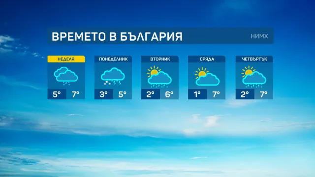 Минималните температури ще бъдат сред 2° и 7°, а оптималните – сред 4° и 9°.