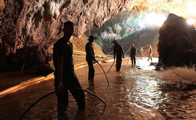 За да извадят 13-те души от пещерата са пратени 13 задгранични водолази, пет тайландски водолази, пет морски пехотинци, добавя Ройтерс.