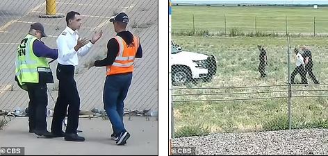 Видеозаписи от летището демонстрират по какъв начин униформеният авиатор върви към бариерата на паркинга за чиновници, носейки секира, която се счита, че е носил в колата си.