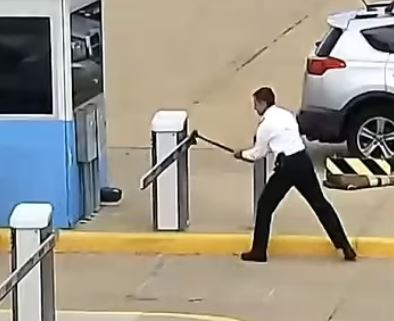 Опитен водач, на който му липсваха единствено години до пенсионирането, стигна своято " точка на изкривяване “. Той подхванал продължителна офанзива с секира върху преграда на паркинг, която не се отваряла. Инцидентът станал на интернационалното летище в Денвър, Колорадо.