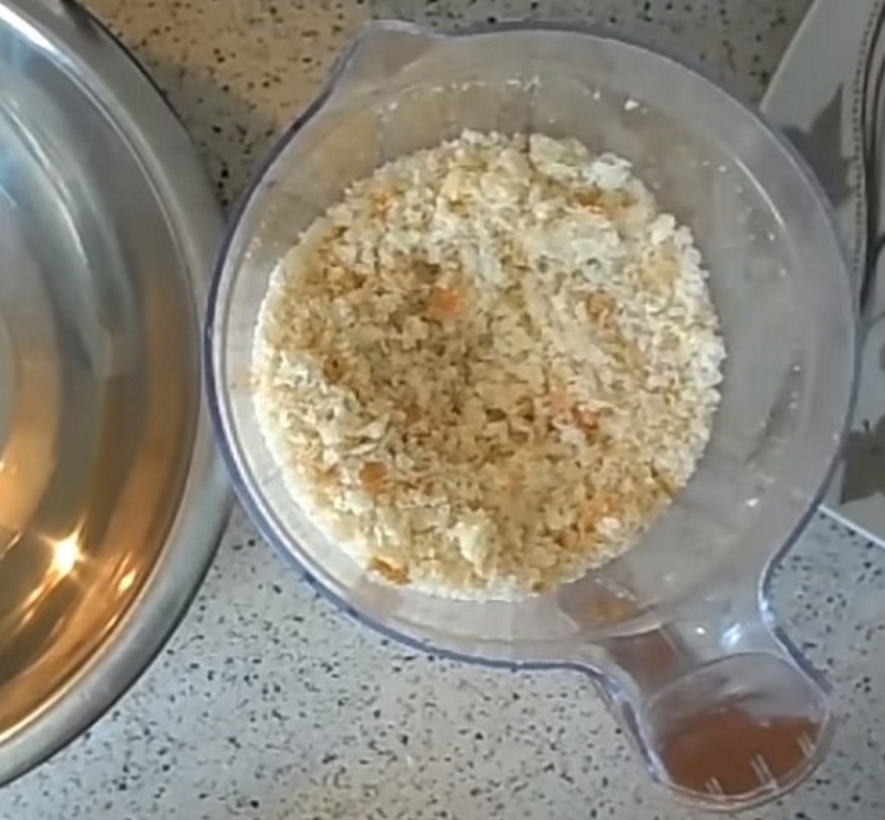 Междувременно смелете в блендер хлябът на трохи. Можете просто да го намачкате с ръцете си, само че това ще ви отнеме повечко време.