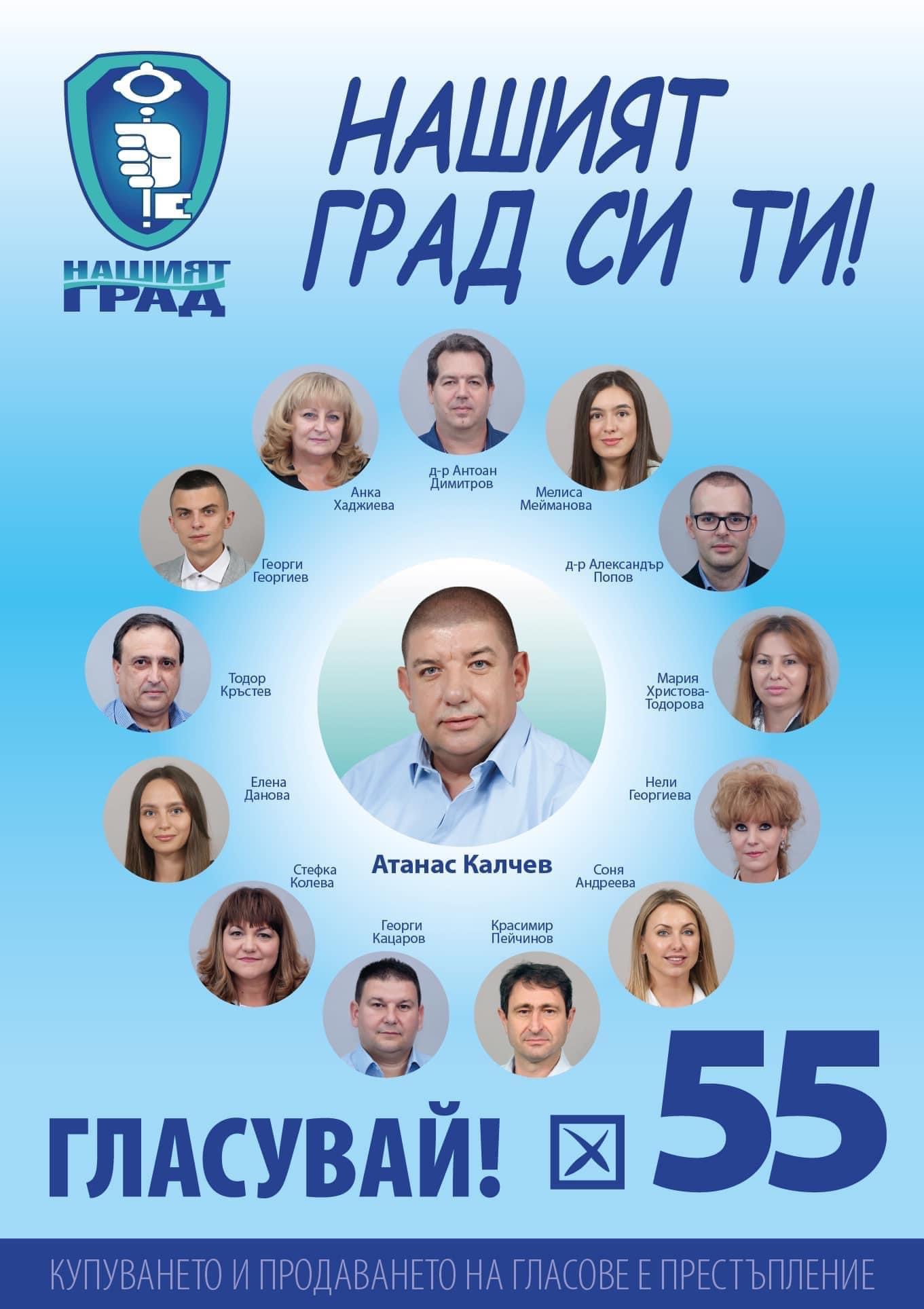 Те се явяват с номер 55 от листата на Политическа партия „ ДВИЖЕНИЕ НАШИЯТ ГРАД “. Водач на листата е дългогодишният ръководител на Общински съвет-Кричим и почитан специалист Анка Хаджиева. Кандидатите поддържат за кмет на община Кричим потвърденият претендент Атанас Калчев.