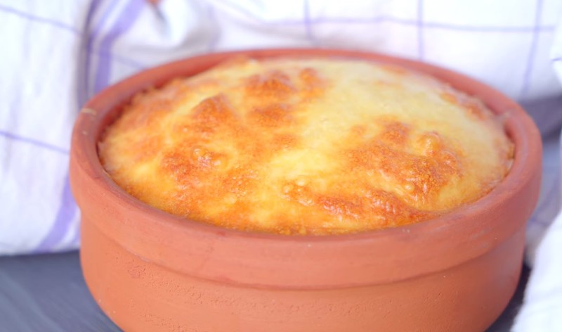 Добавете нишестето и содата, разбъркайте още веднъж. Настържете твърдия кашкавал, комбинирайте с изварата и сложете сместа в намаслени керамични форми. Можете да приготвите суфлето в една огромна форма, само че ще увеличите времето за печене.