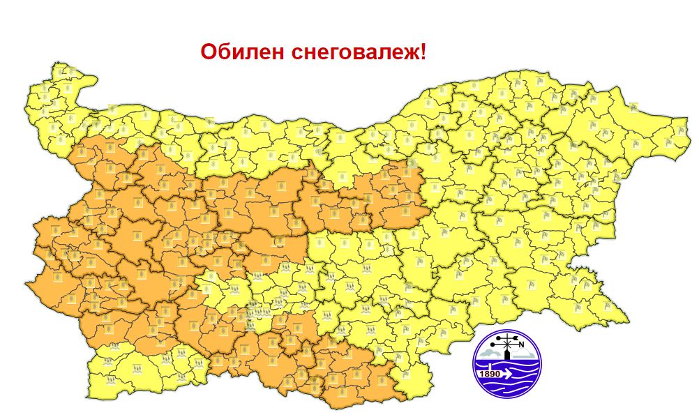 Оранжев код е разгласен за половин България в събота поради предстоящи значителни снеговалежи. По данни на Национален институт по метеорология и хидрология ще натрупа снежна завивка, чакат се мощни ветрове, понижена видимост, поледици.