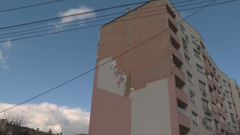 Най-сериозни провали ураганният вятър нанесе в Пловдивска област. В Асеновград огромно парче от фасадата на жилищен блок се срути.