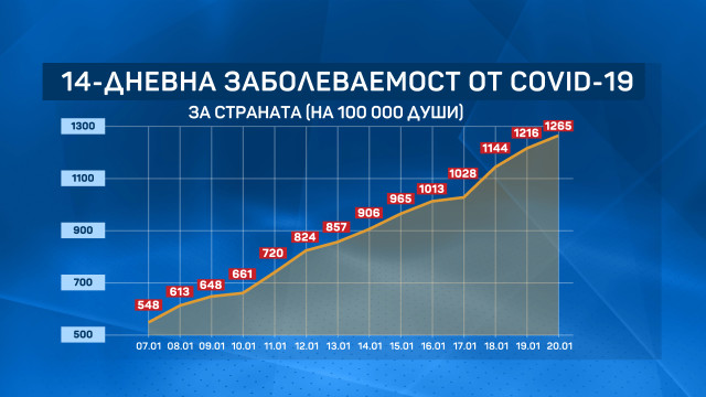 Общата заболеваемост за страната се покачва до 1265 на 100 000 по отношение на 1216 през вчерашния ден.