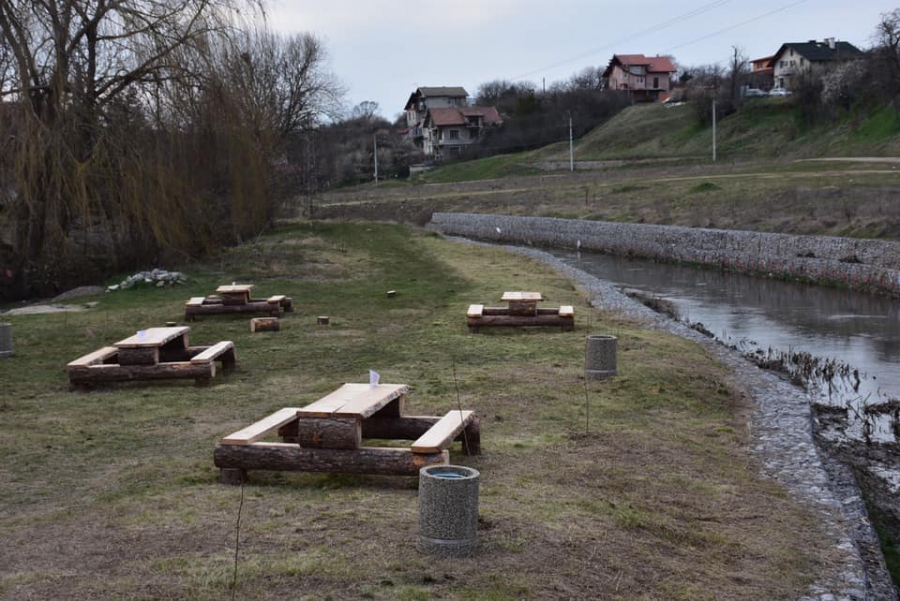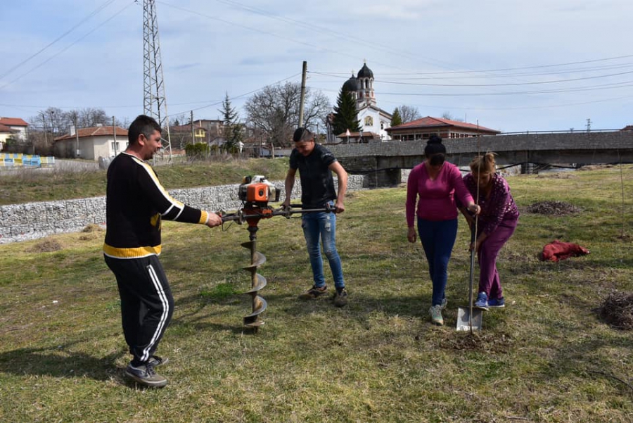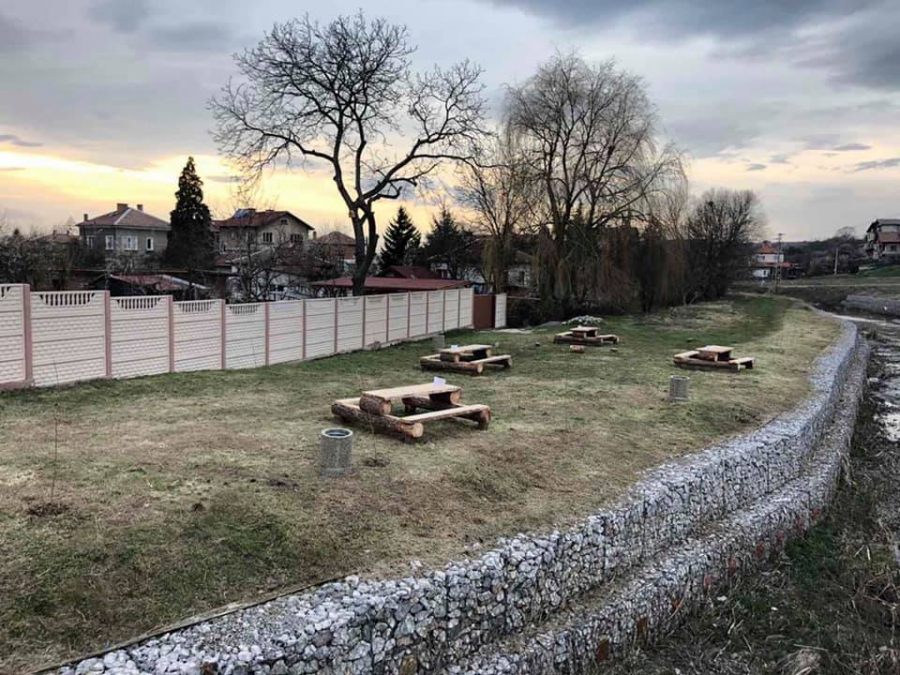 По поречието на река Блато, в продължение на алеята против храм “Свети Свети Кирил и Методий ”, се сложиха дървени пейки с маси и се засадиха дръвчета .