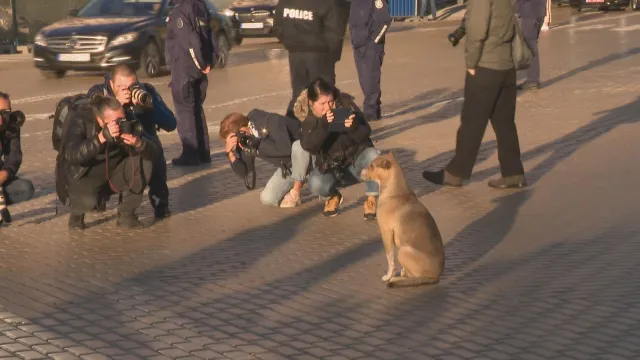 Още от рано сутринта пред постройката на Народното събрание застана необикновен почитател - бездомно куче.