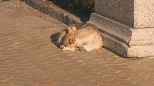 Животното зорко наблюдава разпъването на аления килим на парадния вход пред Народното събрание: