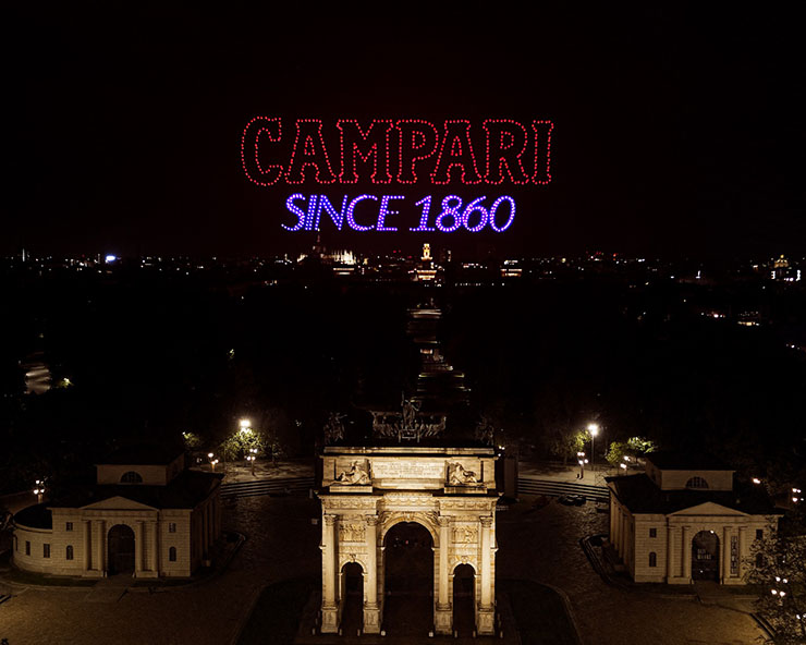 Отличава се с остри, смели и уверени линии, които отразяват елегантната минималистична мода и актуалния дизайн, ловко съчетани с архитектурни знаци на града.За представянето на новата бутилка Campari, 1 000 дрона осветиха небето над Милано и вдъхнаха живот на " емблематичните " милански знаци посредством грандиозно.