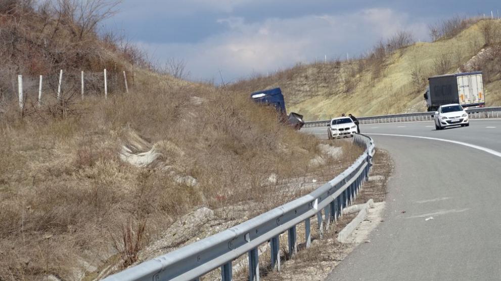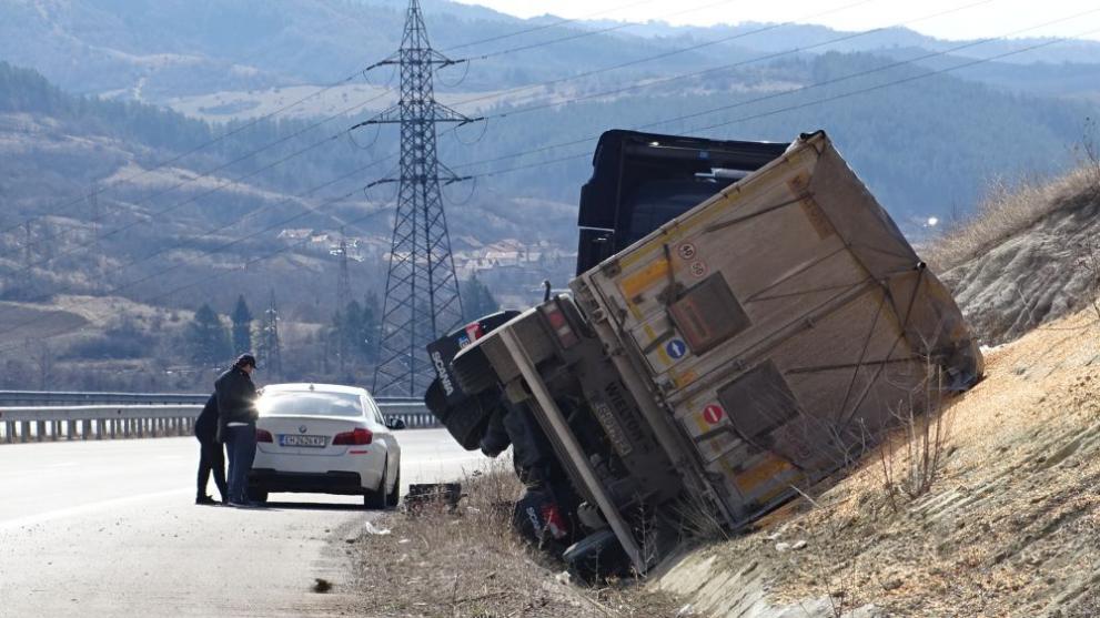 ТИР се е преобърнал встрани от пътя на магистрала „Струма“