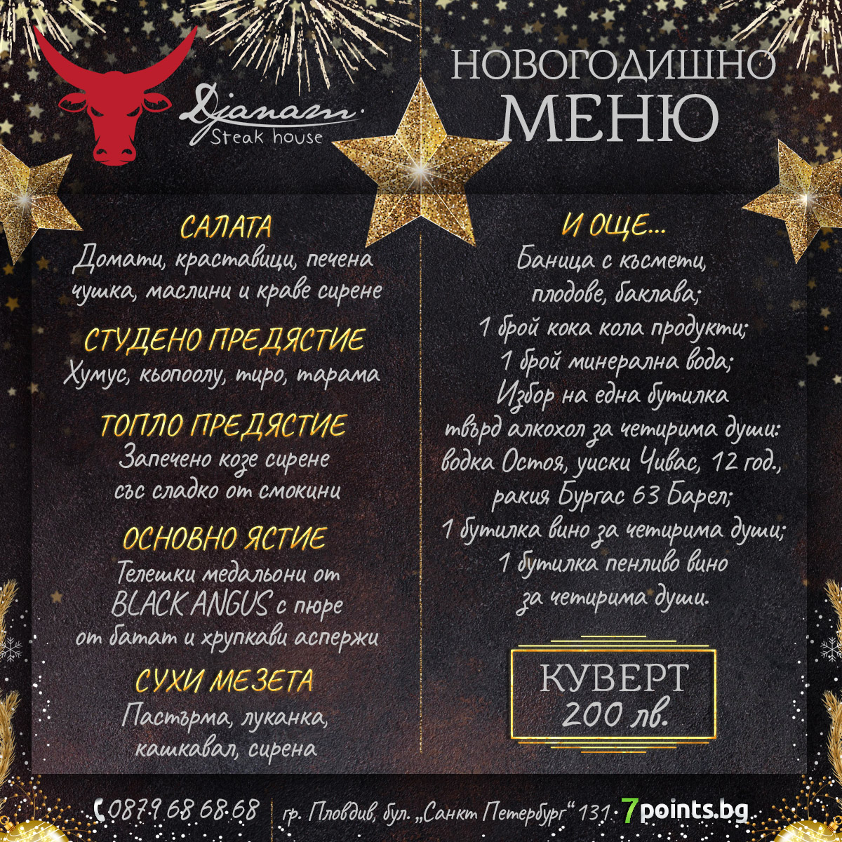 Остават броени дни до посрещането на новата 2022 година . Дайте старт на първите й мигове по най-хубавия метод в Djanam Steak House в Пловдив!
