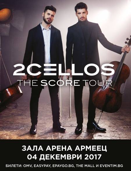 Остават по-малко от 500 билета за дълго чакания концерт на 2CELLOS в зала „ Арена Аремеец “. Най-успешното и динамично инструментално дуо на актуалната музикална сцена 2CELLOS идват у нас на 4 декември, с цел да показват най-новия си албум “SCORE”, който включва някои от най-красивите мелодии от филми и телевизионни сериали като „ Игра на тронове “, „ Властелинът на пръстените “, „ Гладиатор “, „ Титаник “ и други. Освен кино музика, ще чуем и най-големите шлагери на виртуозните челисти.