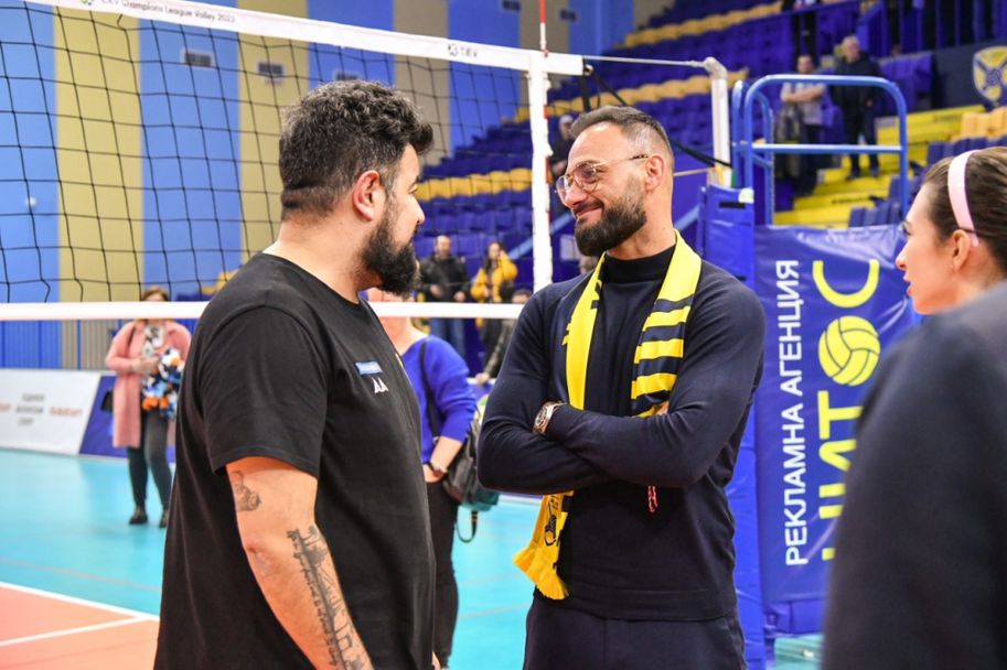 Футболната звезда наблюдава волейболния дуел в спортна зала “Васил Левски ”, след което поздрави целия тим на Хебър за успеха.