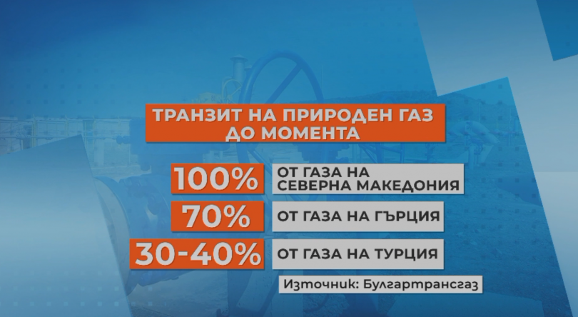 И до момента в който количествата синьо гориво за България са сигурни, не по този начин стои въпросът с преноса - а точно природният газ, който сега се придвижва от Русия през Украйна, Молдова, Румъния и България към Северна Македония, Гърция и Турция. Въпреки че България има контракт за транспорт до 2030 година с " Газпром ", самата компания ще избере дали да го съблюдава и по кой маршрут.