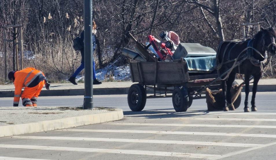 За следващия случай алармира жител, който снима две каручки из булевардите. Той споделя и фотоси от срещата. На една от тях виждаме " композицията ", която търпеливо изчиква на червен светофар на кръстовище. На другата откриваме претрупана каруца, до която мъж събира движимости.