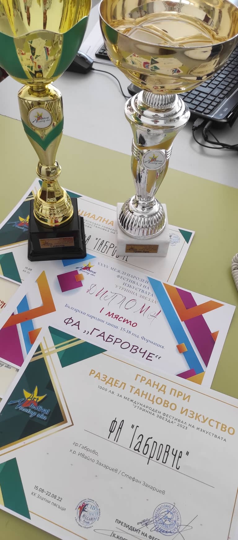Петчленното жури на фестивала присъди на младите танцьори от Габрово три влиятелни награди – първо място в категория Български национални танци 15-18 год., специфична премия за хореография и режисура на театрален танц на Варненския свободен университет „ Черноризец Храбър “ и Гран при в раздел Танцово изкуство.