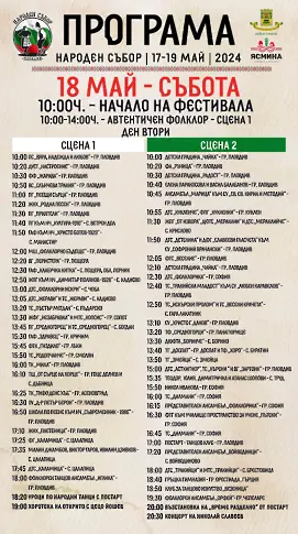 В националните веселби ще се включат Николай Славеев, орк. „ Млади тракийци “, групировка „ Наздравица “, отбор „ Тракия “, отбор „ Родопа “, „ Големите гайди “, ПостАрт с танцова интерпретация на „ Време разделно “, голям брой ансамбли, танцови и певчески сформира, детски градини, учебни заведения и доста други.
