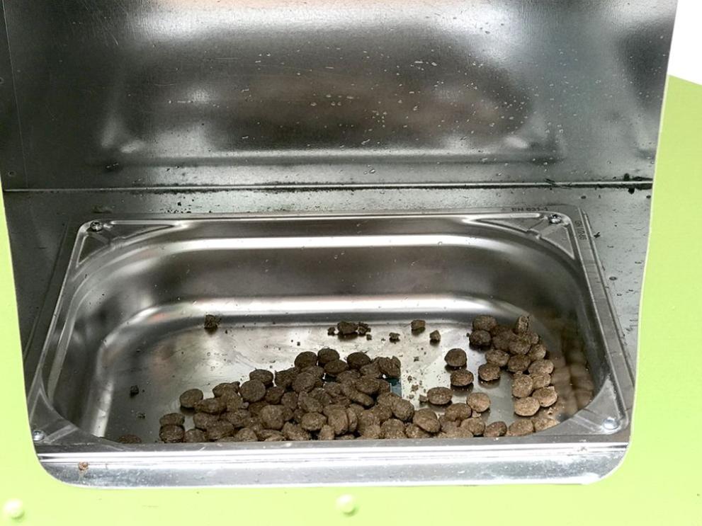 Капацитетът на устройствата е задоволителен за едноседмично действие – почти един път седмично се зарежда контейнерът за храна, при което се освобождава и контейнерът за пластмасови бутилки.