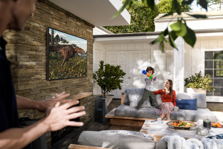 Конкретно с The Terrace, Samsung показва на нашето внимание един превъзходен 4K QLED тв приемник от висок клас, който е наличен в размери с 55-, 65- и 75-инчов екран и, с изключение на всичко друго, е основан за външно монтиране. Това е тв приемник, който можем да сложим на нашата тераса, веранда, барбекю, лятна кухня, зимна градина, култивиран ъгъл, басейн и така нататък, на всяко място, на което бихме седнали навън, с цел да вечеряме, да гледаме филм или мач, или да изпием някое пиво с другари.