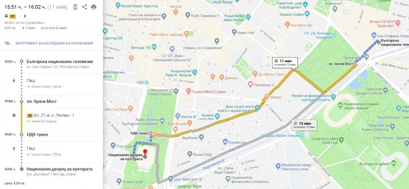 Градският транспорт в София вече в Google Maps