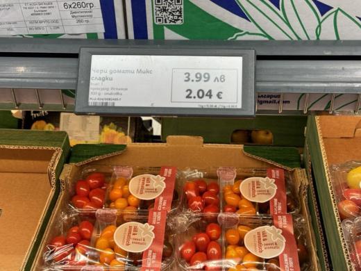 В един от огромните магазини в центъра на София може да си купите за 1.99 лева Под тази цена е посочена и цената в евро, която е 1.02 евро . Простата инспекция демонстрира, че те са сметнати по закрепения курс на лв. по отношение на еврото и няма никакво завишение на цените .