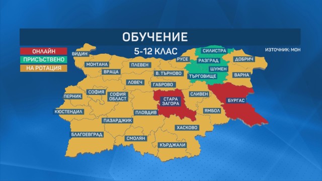 Само в четири области в клас се връщат всички възпитаници – Разград, Силистра, Търговище и Шумен.