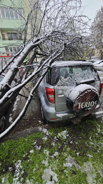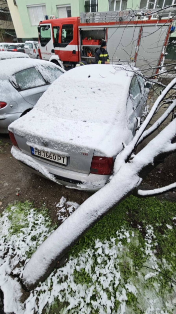 Снегът събори дърво върху автомобили в Пловдив СНИМКИ