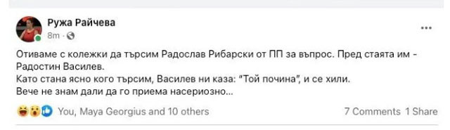 От Facebook профила на Ружа Райчева