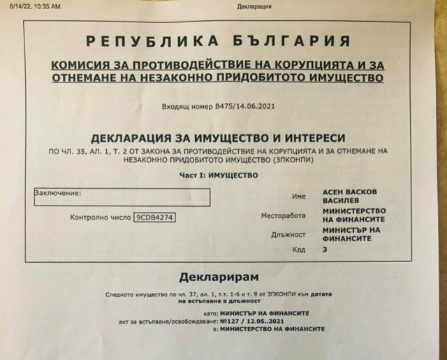 Излъгал ли е Асен Василев, попълвайки декларацията за имущество и ползи пред КПКОНПИ?