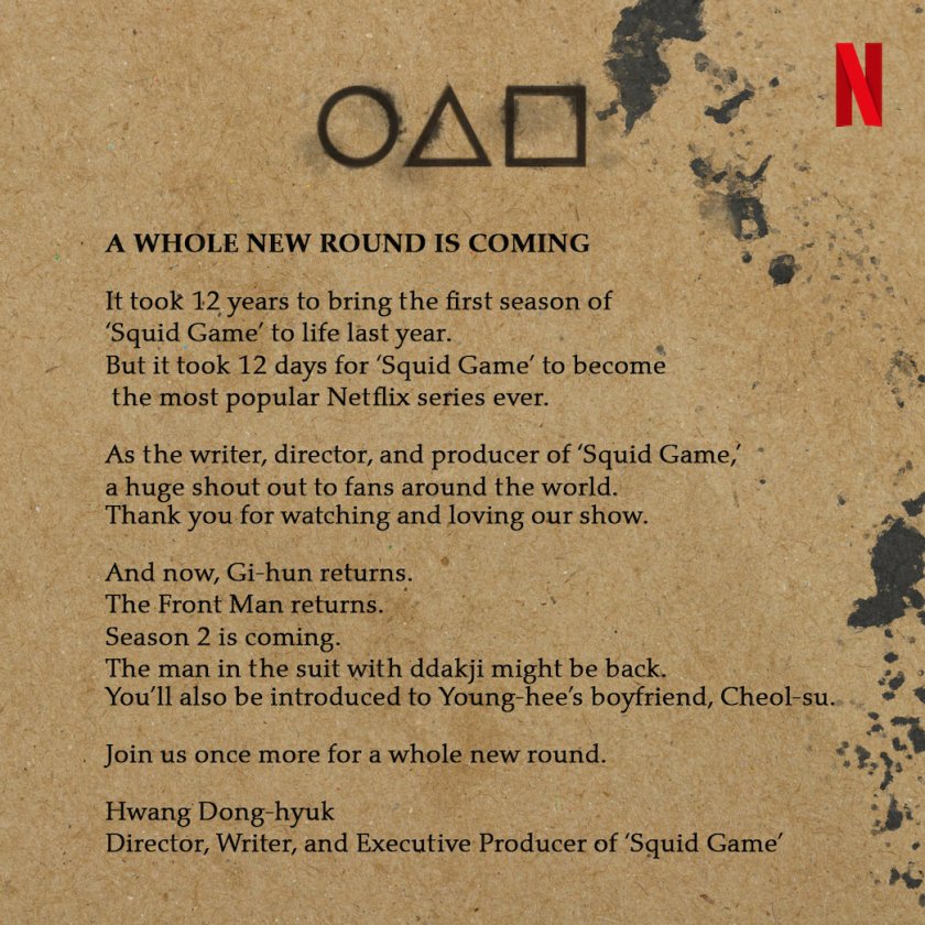 И Нетфликс публично оповестиха, че ще има продължение на Игра на калмари (Squid Game).