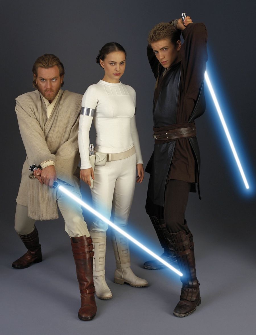 (Natalie Portman, Ewan McGregor, and Hayden Christensen in Star Wars, Episode II- Attack of the Clones by George Lucas, 2002)