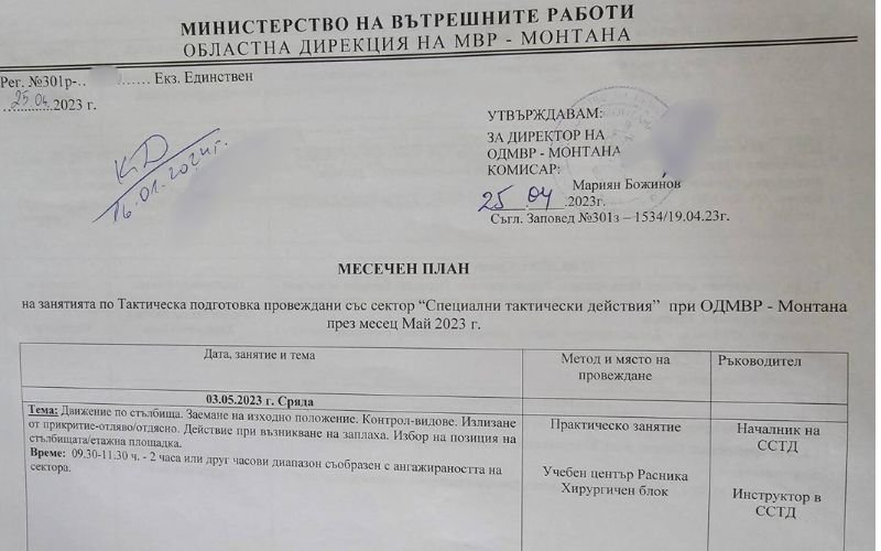 От Министерство на вътрешните работи предоставиха на Българска национална телевизия документи за учението от месец май 2023 година.