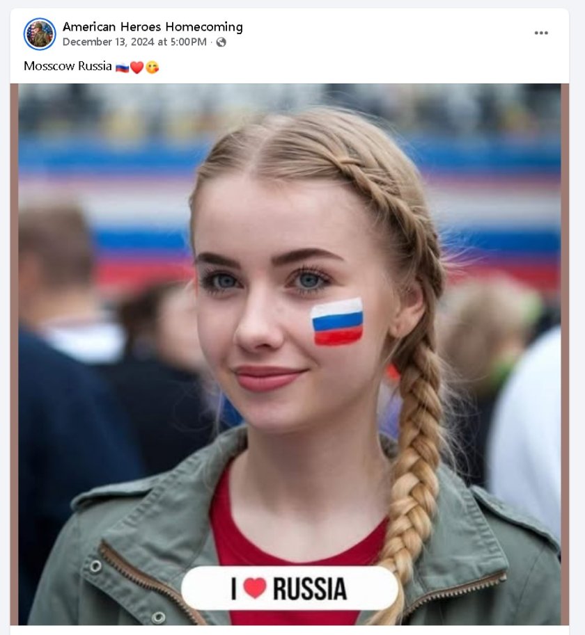 От няколко месеца в обществената мрежа Facebook в страници и групи на британски език интензивно се популяризира съветска агитация. Хиляди фотоси, генерирани с изкуствен интелект, промотират съветската военна мощност, съветското благосъстояние и личността на президента Владимир Путин.