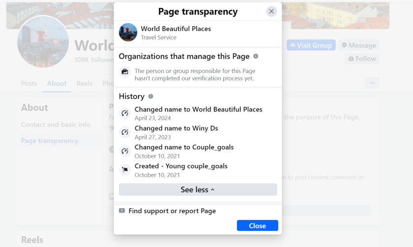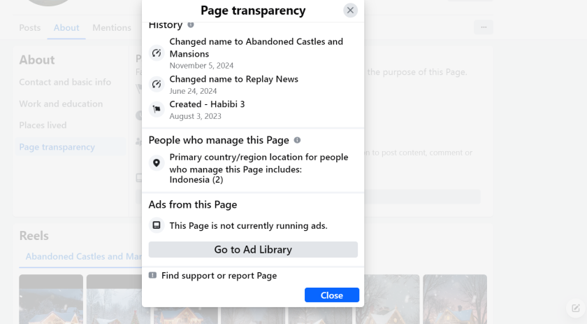 Част от страниците са преименувани през 2024 година като по-късно наличието в тях внезапно е сменено с проруско. Това е сигнал, че е допустимо да са откраднати, с цел да се насочва наличието към към този момент основана група консуматори. Възможно е и в началото да са били основани на друга тема, с цел да се набере база с задоволително консуматори или продадени от притежателите им. Подобна процедура съществува и в България.