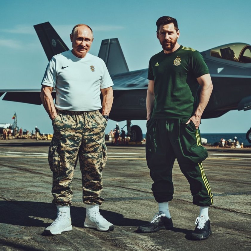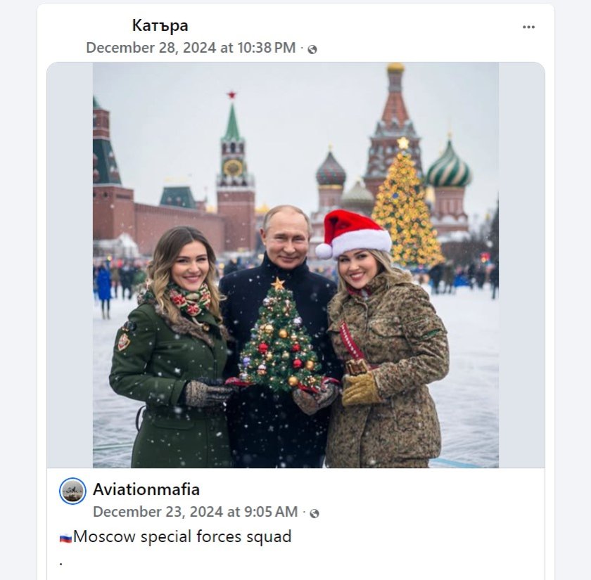 Голяма част от AI изображенията са с неточности - на фотографията по-долу Путин е паралелно до Путин. Качването на наличието обаче евентуално е автоматизирано и никой не реализира първокласен надзор.